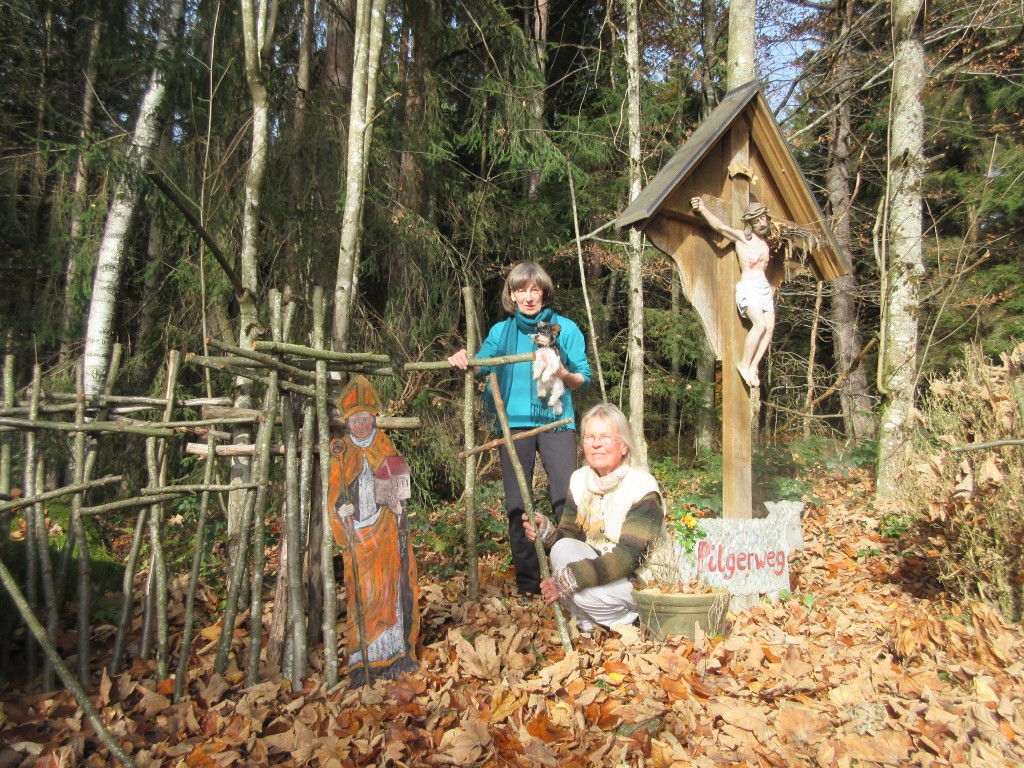 Der am 7. Mai diesen Jahres verstorbene Pilgerhelfer Xaver Hagengruber hat die Idee vor etwa 10 Jahren ins Leben gerufen: Trage ein Kreuz hinauf zur Wolfgangskapelle! Xaver Hagengrubers Vermächtnis wurde nun zum Wolfgangstag am 31. Oktober erneuert. 20 neue Kreuze, solide und handlich aus jungen Erlenstämmen von Xavers treuen Freund Johannes Jung gefertigt, stehen wieder bereit. „Ich beobachte das ganze Jahr über wahre Pilgerströme, die zur Kapelle hinaufgehen“, erklärt Hildegard Weiler, Betreuerin der Wolfgangskapelle. „Die Kreuzaktion ist sehr gefragt soll unbedingt weiter bestehen bleiben. Ich empfinde sie als großen Segen.“ Hildegard Weiler ist erste Vorsitzende vom Verein Pilgerweg St.Wolfgang. Sie wohnt am Fuße das Kreuzweges am St Wolfgangshof. „Die Kreuze sind schon zum Wahrzeichen geworden, so wie die wegweisenden Blechtiere, Schafe, Alpakas und Engelfiguren den Weg zieren, die Menschen erfreuen und auf den Seelen-Hirten Wolfgang aufmerksam machen.“