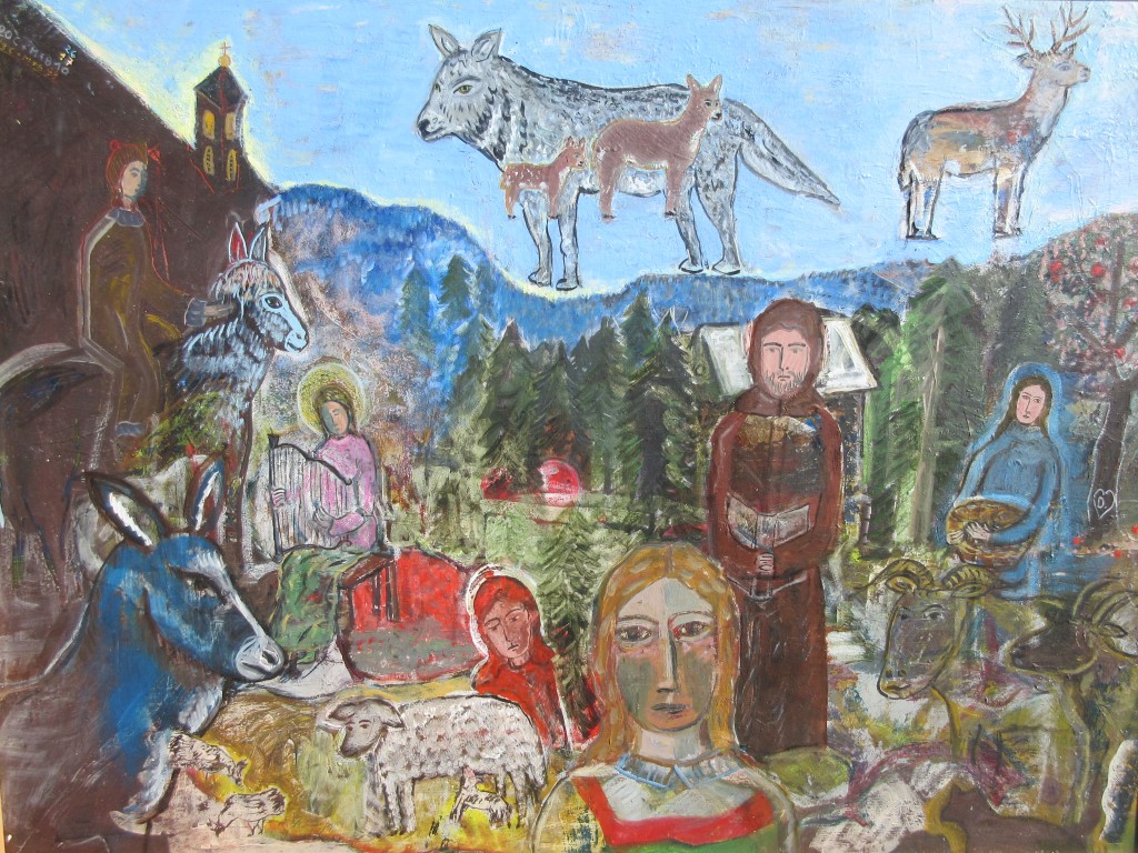 Im Arbeitsprozess: Himmel wurde nun blau – Wolf nicht ganz übermalen, neue Tiere erfinden