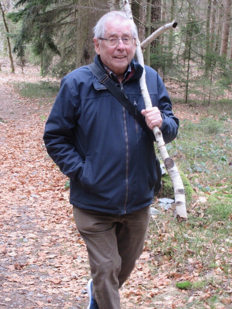 + Dr. Peter Pfarl + aus St. Wolfgang, Österreich mit einem Birkenkreuz am 18. März 2022 auf dem Weg zur Wolfgangskapelle. Dr. Peter Pfarl hat den großartigen Wanderführer Der Wolfangweg verfasst und war federführend beim Aufbau des Österreichischen Parts des grenzüberschreitenden Wolfgangweg. Wir behalten ihn als wunderbaren Wolfgangsfreund ehrend im Gedächtnis!