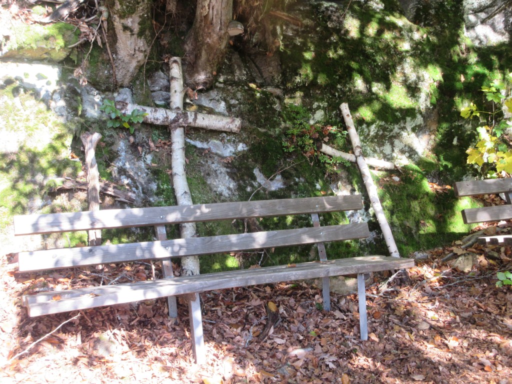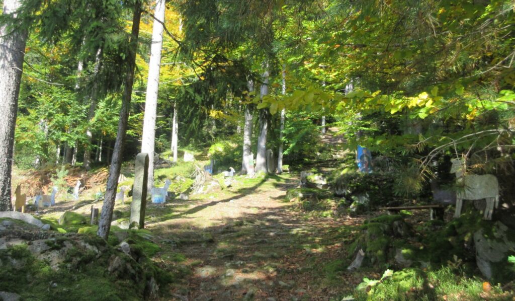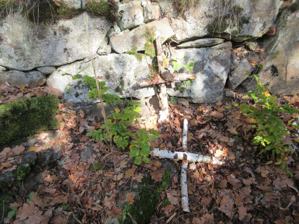 Da liegen Birkenkreuze bei den Felsen am Boden. Es sind Stücke von alten Birkenkreuzen, die Pilger einst hinauf getragen haben mit einem Anliegen, einer Bitte oder einem Dank und nun erneut aufgerufen und platziert haben.