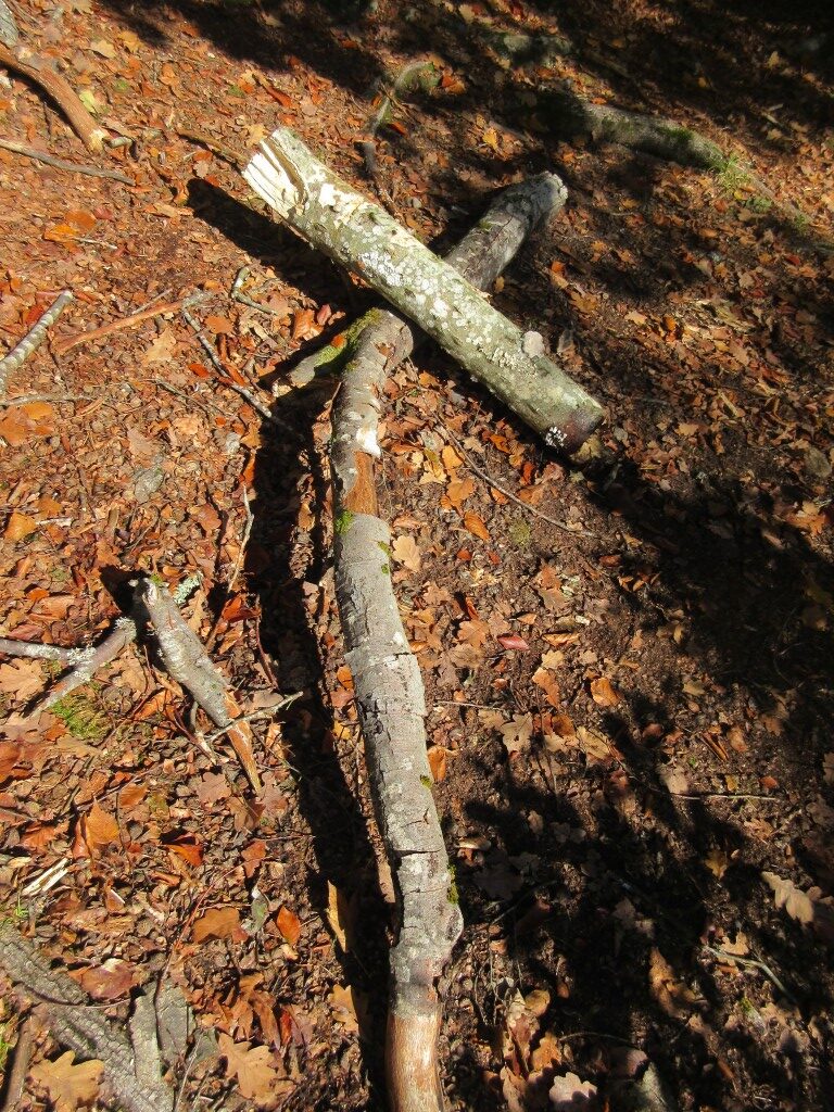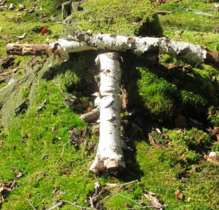Jemand hat aus 2 Birkenkreuz-Stücken ein „Franziskus-Kreuz (T-Form) hingelegt…
