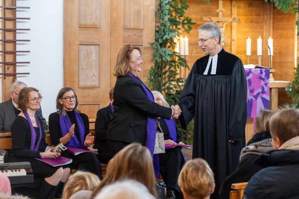 Pfarrer Roland Kelber beglückwünscht Paule Kucerova zur Gründung des Projektchors