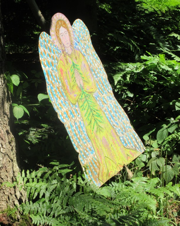 Der Baumschutzengel-Pfad beginnt bei der Waldmarienkapelle in Ramersdorf, ein stiller kleiner Ort in den Höhenlagen des Bayerischen Waldes. Die Kapelle wurde nach einer Gebetserhörung 1859 erbaut. Sie ist dann ziemlich vergessen worden und wurde baufällig. Aber Familie Bielmeier aus Ramersdorf nahm sich des wunderbaren Kleinods an und renovierte es liebevoll. Anlässlich der Einweihung des Baumschutzengel-Pfades im letzten Juni – Johannistag – wurde sie abermals frisch gestrichen und mit einem Engelbild und zwei lebensgroßen Blechengeln verziert. Der Besitzer Bernhard Bielmeier ist stets inspiriert von Engeln, von Wald und Natur und dem Wunderbaren des christlichen Glaubens, und hat zusammen mit Dorothea Stuffer letztes Jahr im Mai 2020 den Baumschutzengel-Pfad ins Leben gerufen. Der etwa 30 Minuten lange Pfad führt durch einen sehr schönen Lehr-Wald, wo es viel zu entdecken gibt. Da am 11.August eine geführte Wanderung mit Pfarrer Rodrian stattfinden soll, haben Dorothea Stuffer und Elke Weber gestern mal wieder – nach einem langen Winter und etlichen Gewitterstürmen – nach dem Rechten gesehen. Elke Weber wartete oben bei der Waldmarienkapelle und achtete drauf, dass Dorothea Stuffer mit ihr in Kontakt blieb. Wichtige Regel: Gehe besser nicht allein in einen einsamen Wald!