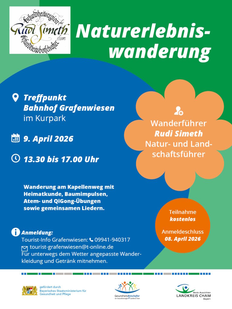 Naturerlebniswanderung am Donnerstag, 9. April um 13.30 Uhr Start am Bahnhof Grafenwiesen.