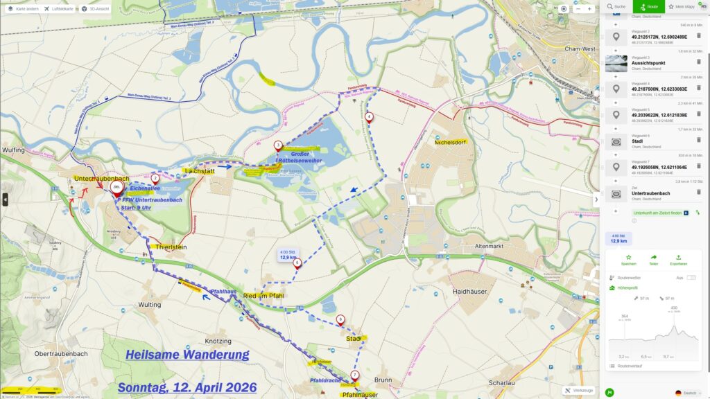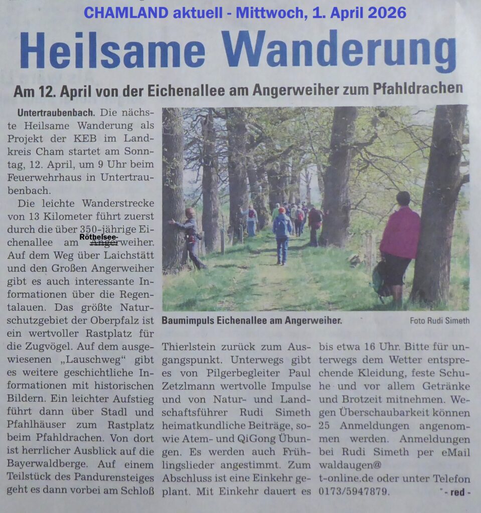 12. April unsere 2. Heilsame Wanderung: Von Untertraubenbach in die Regentalauen und zum Pfahldrachen.
