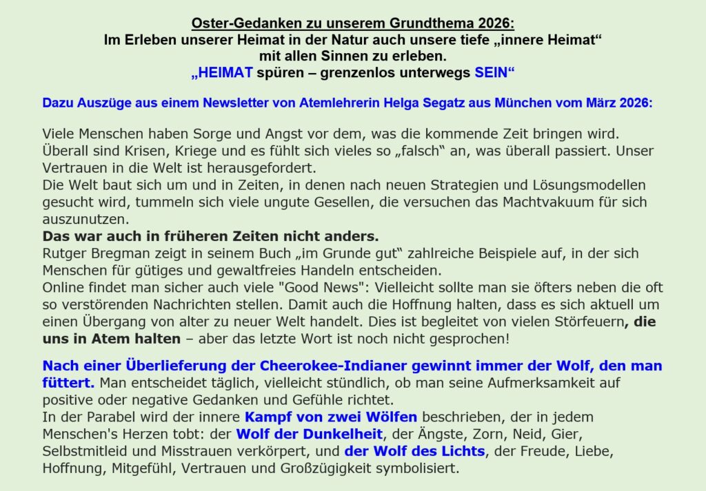 Dazu spricht mir Atemlehrerin Helga Segatz in ihrem März-Newsletter aus der Seele. Dies füge ich mit meinen Gedanken dazu als Bilddateien bei.